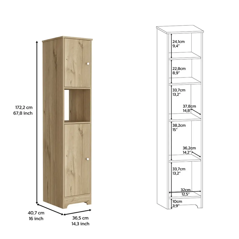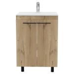 The Hartford Bathroom Set is a unique and exclusive set perfect for completing your bathroom. This set includes an incredible linen cabinet and a deluxe freestanding sink cabinet, and both are made with manufactured wood in a light oak finish. This set will surely add a touch of elegance and sophistication to your bathroom decor. The Yaka Linen Cabinet is the perfect storage solution for any bathroom, thanks to its sleek design and compact size. The cabinet features a wide open shelf in the middle (13,2″H X 12,5″W), perfect for storing towels, toiletries, and other bathroom essentials, and two single-door cabinets with internal storage for additional space. The cabinet is also made from high-quality materials, making it durable and sturdy. This sturdy cabinet is perfect for any bathroom and features a beautiful sink (18,1″D X 23,8″W) that will make your bathing experience all the more enjoyable. And with its internal storage protected by a double-door cabinet (27,2″H X 11,6″W), this cabinet has everything you need to keep your bathroom looking neat and tidy. ***FAUCET NOT INCLUDED***, but rest assured that it will perfectly complement any faucet you choose. Order yours today and enjoy the perfect blend of form and function in your home.
